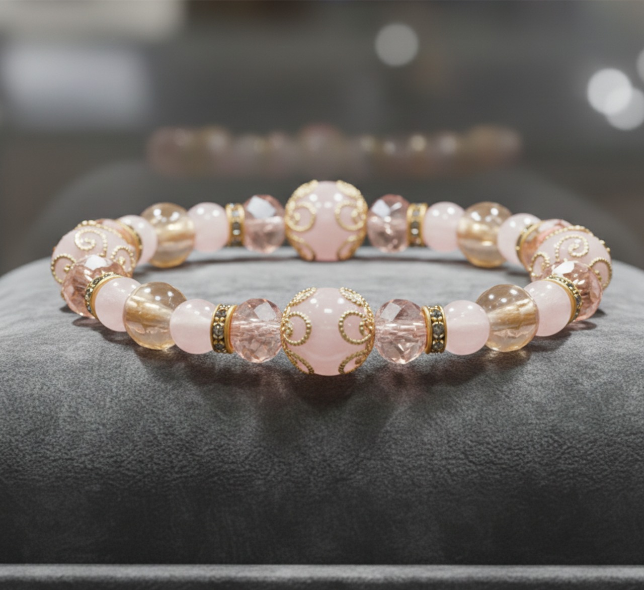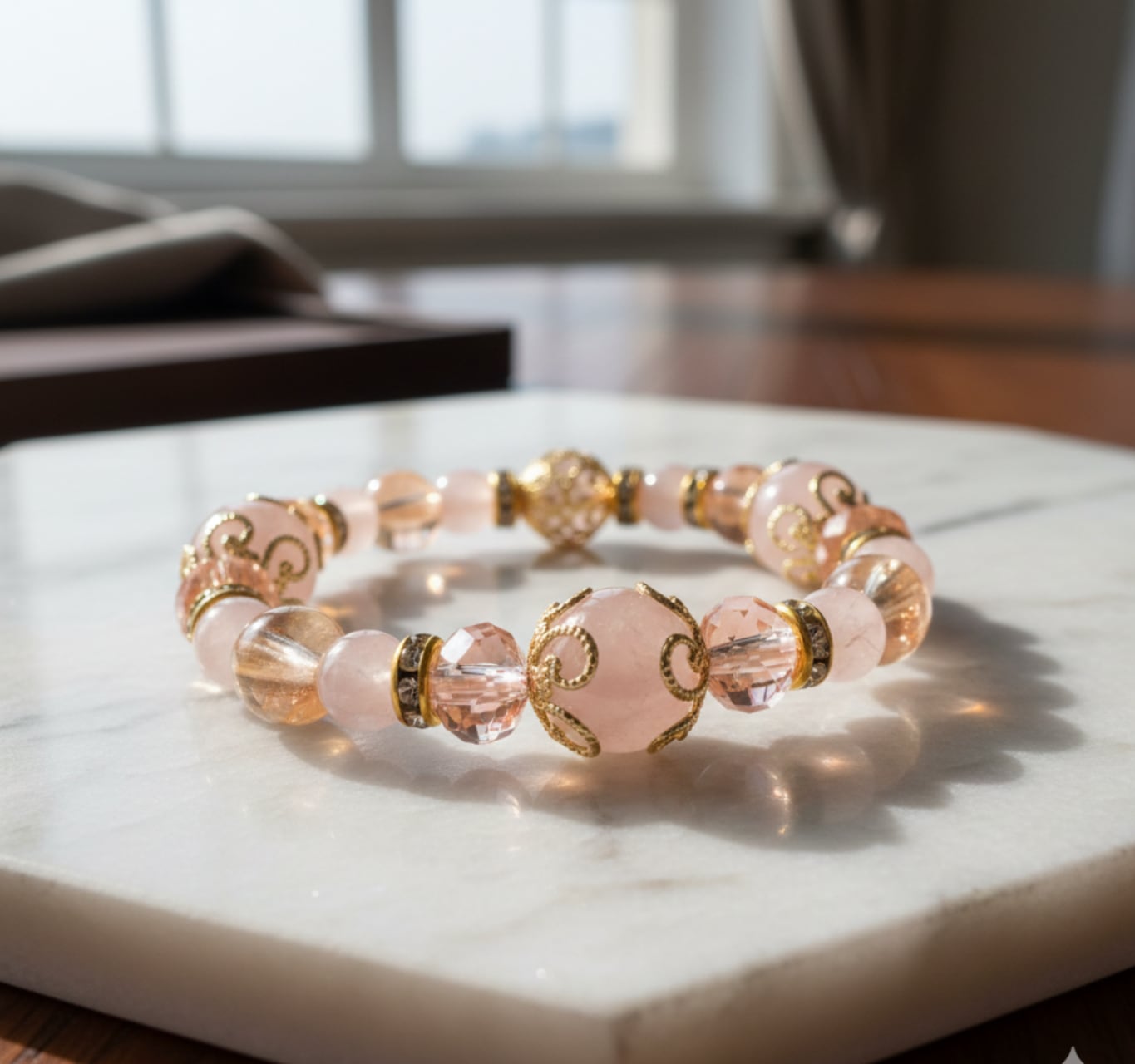 ブレスレット ローズクオーツ/ゴールデンオーラブレス NS_DB0001_572