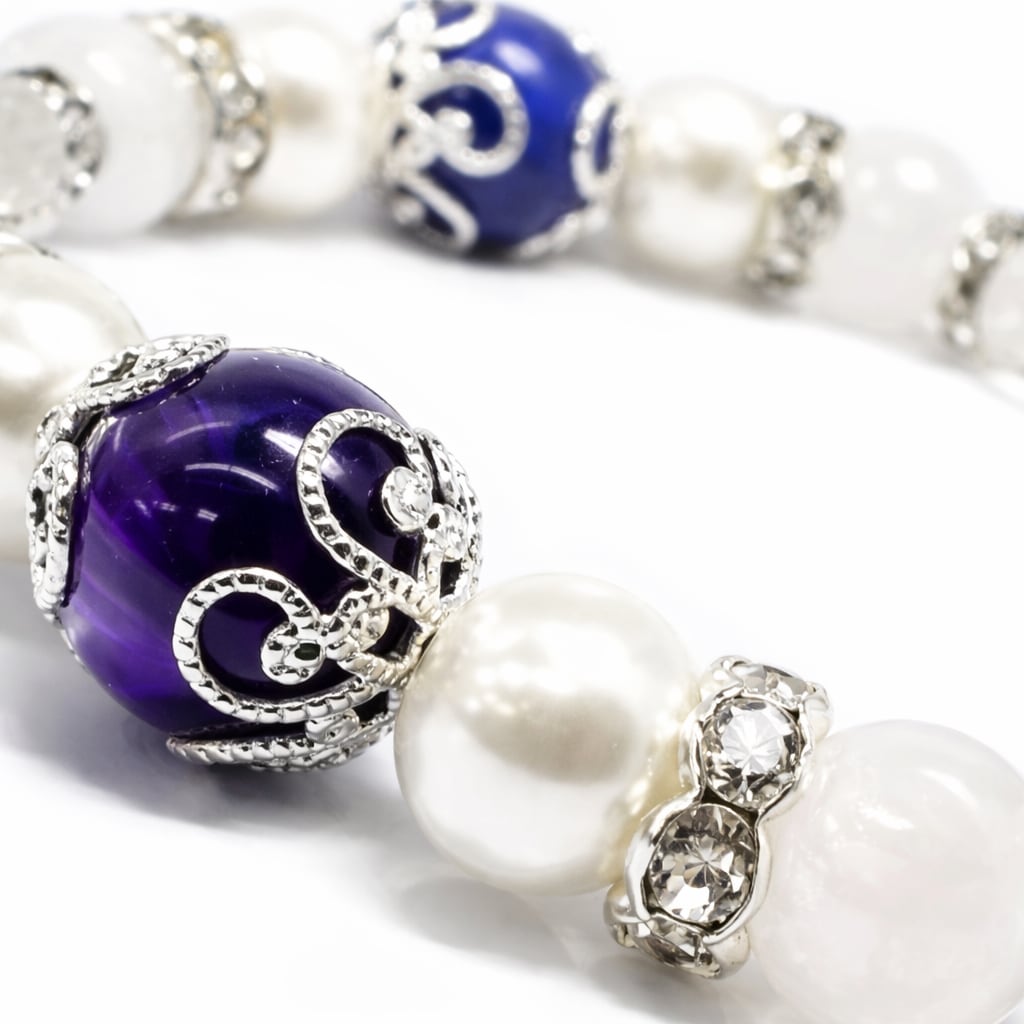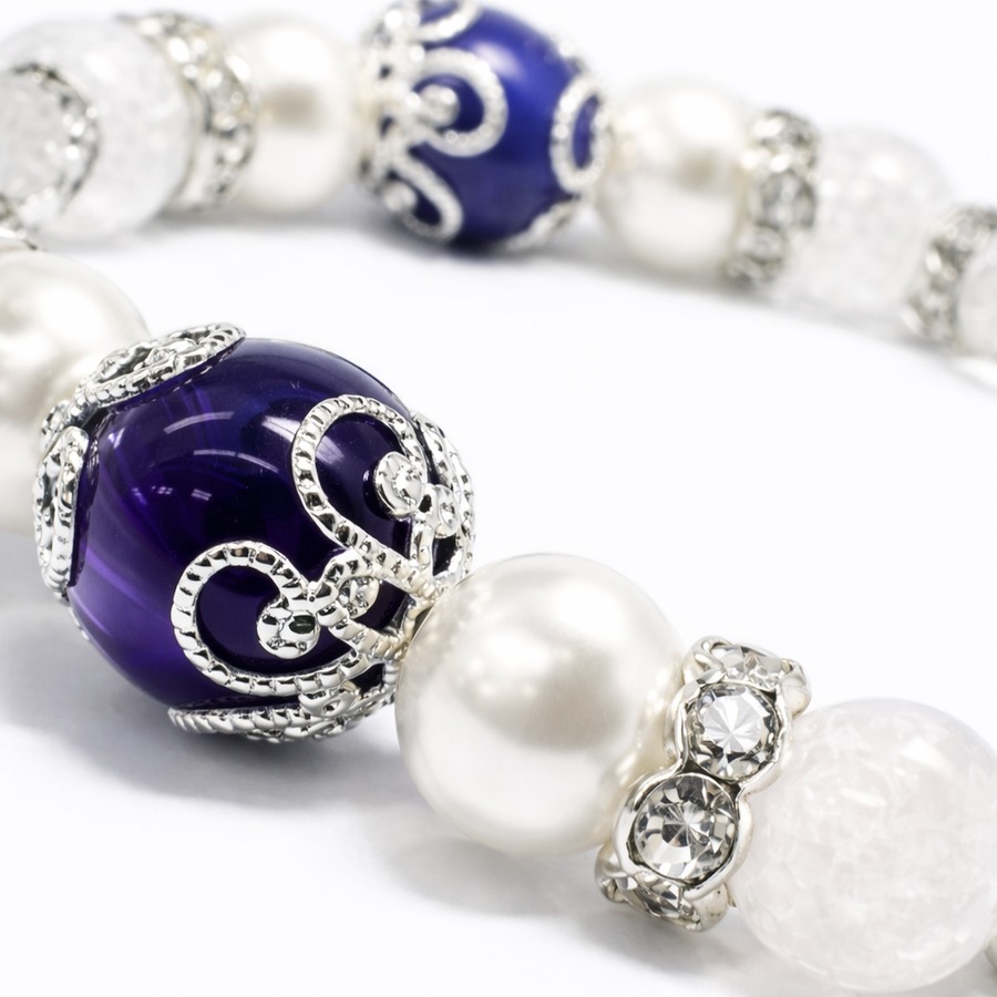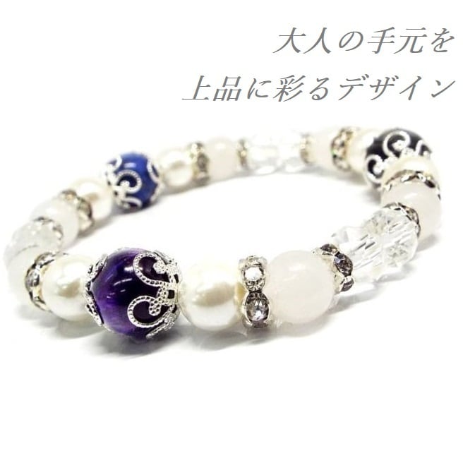 ブルーとパープルの深み、シルバーパーツの輝きが